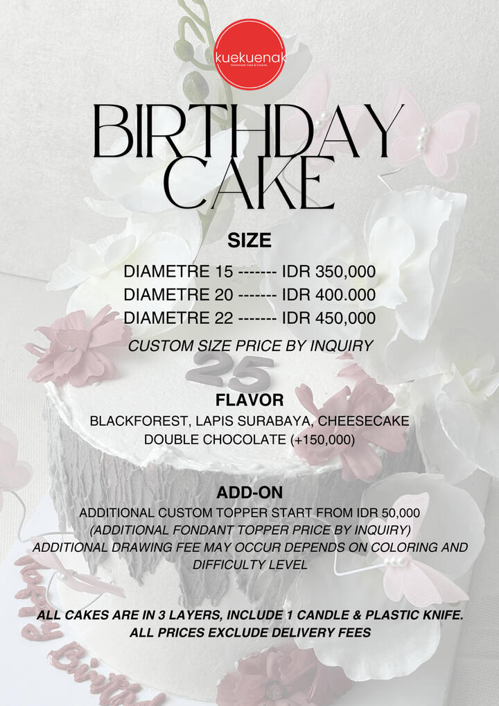 Seluruh produk kuekuenak kini telah bersertifikasi HALAL INDONESIA.Pemesanan cakes, cookies dan snack dapat dipesan melalui Whatsapp atau DM Instagram.Kami sarankan pemesanan cakes H-7 untuk memastikan ketersediaan slot dan konsultasi design.Format order dan invoice akan diberikan apabila tanggal dan design telah disetujui oleh kami.Terima kasih.